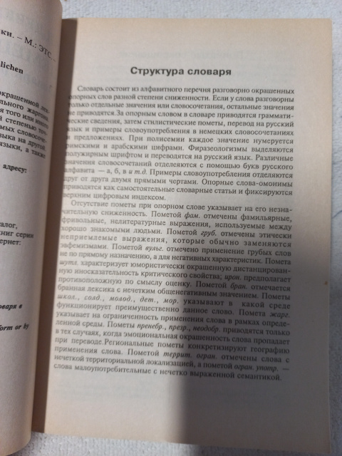 Немецко-русский словарь разговорной лексики насчитывает более 30 тысяч терминов разговорно-окрашенной лексики, в том числе новейшего молодежного и профессионального жаргона. Приводимые в словаре примеры контекстуального употребления того или иного немецкого слова или фразеологизма позволяют с достаточной степенью точности почувствовать стилистическую окрашенность используемых словосочетаний, а значит более ярко и адекватно переводить с одного языка на другой.