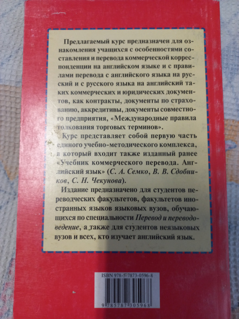 Предлагаемый курс предназначен для ознакомления учащихся с особенностями составления и перевода коммерческой корреспонденции на английском языке и с правилами перевода с английского языка на русский и с русского на английский таких коммерческих и юридических документов, как контракты, документы по страхованию, аккредитивы, документы совместного предприятия, «Международные правила толкования торговых терминов».Курс представляет собой первую часть единого учебно-методического комплекса, в который входит также «Учебник коммерческого перевода. Английский язык» (авторы: С. А. Семко, В. В. Сдобников, С. Н. Чекунова).Издание предназначено для студентов переводческих факультетов, факультетов иностранных языков языковых вузов, где ведется обучение по специальности 022900 – Перевод и переводоведение, а также для студентов неязыковых вузов и всех изучающих английский язык.