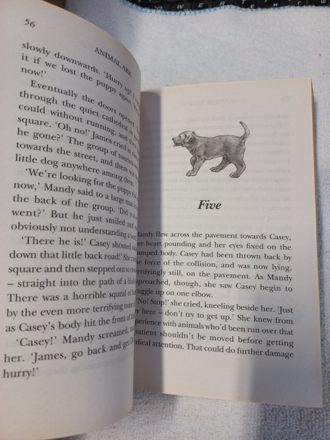 Animals aways come first for Mandy, and at Animal Ark - her parents' veterinary surgery - she is always making friends. In 'Pup at the Palace', on a visit to Buckingham Palace, Mandy spots a Labrador puppy, and then sees him again all over London. In 'Dot at the Door' Mandy finds a pregnant Golden Retriever tied up outside Animal Ark.