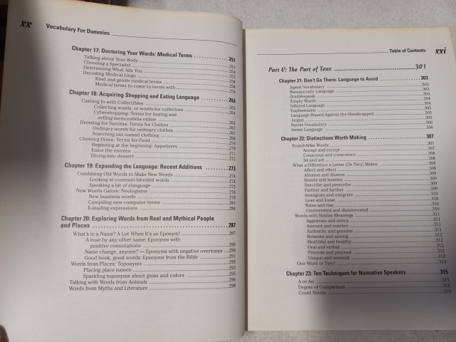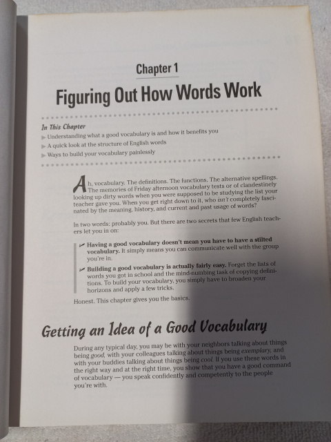 Vocabulary For Dummies doesn't overwhelm you with endless word lists. Instead, it gives you a complete vocabulary-building program that familiarizes you with words from all areas of life as they're used in context―from bar mitzvahs to business meetings, PCs to politics―with a host of fun features, including: