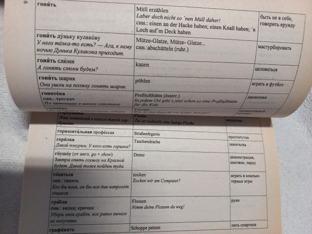 Словарь содержит около 2000 русских слов и выражений с переводом их на немецкий язык и примерами словоупотребления. В словаре нет ни одного примера, который был бы придуман самим автором словаря или теми лицами, для которых немецкий язык не является родным и кого нельзя назвать молодёжью. Значительное число лексических единиц, относящихся к молодежному жаргону, было отобрано в сети Интернет, где в последнее время появилось большое количество как любительских, так и профессиональных толковых онлайновых словарей, составленных молодыми людьми.