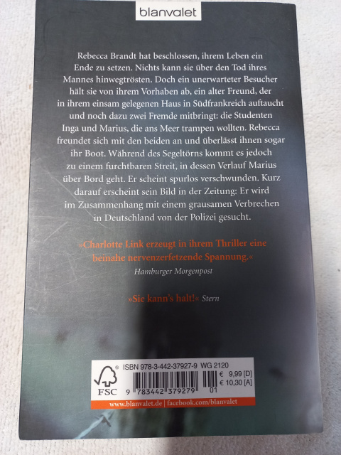 Rebecca Brandt hat beschlossen, ihrem Leben ein Ende zu setzen. Doch ein unerwarteter Besucher hält sie von ihrem Vorhaben ab. Ein alter Freund besucht sie in ihrem Haus in Südfrankreich – im Gepäck die beiden gestrandeten Studenten Inga und Marius, die ans Meer trampen wollten. Rebecca mag die beiden und überlässt ihnen ihr Boot. Aber während des Segeltörns kommt es zu einem schrecklichen Streit. Marius fällt über Bord und ist verschwunden. Wochen später erscheint sein Bild in der Zeitung. Im Zusammenhang mit einem furchtbaren Verbrechen in Deutschland wird nach ihm gesucht.
