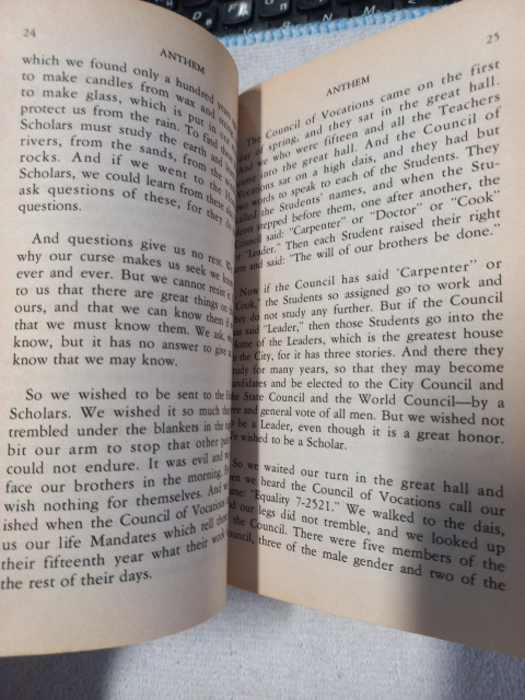 In all that was left of humanity, there was only one man who dared to think, seek, and love. He lived in the dark ages of the future. In a loveless world, he dared to love the woman of his choice. In an age that had lost all trace of science and civilization, he had the courage to seek and find knowledge. But these were not the crimes for which he would be hunted. He was marked for death because he had committed the unpardonable sin: He had stood forth from the mindless human herd. He was a man alone. He had rediscovered the lost and holy word—I.