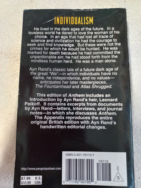 Anthem is Ayn Rand's classic tale of a dystopian future of the great "We"—a world that deprives individuals of a name or independence—that anticipates her later masterpieces, The Fountainhead and Atlas Shrugged.