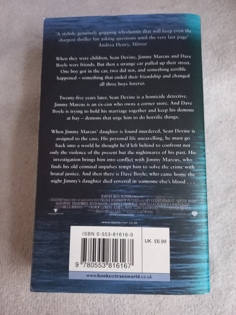 Twenty-five years later, Sean is a homicide detective. Jimmy is an ex-con who owns a corner store. And Dave is trying to hold his marriage together and keep his demons at bay -- demons that urge him to do terrible things. When Jimmy's daughter is found murdered, Sean is assigned to the case. His investigation brings him into conflict with Jimmy, who finds his old criminal impulses tempt him to solve the crime with brutal justice. And then there is Dave, who came home the night Jimmy's daughter died covered in someone else's blood.
