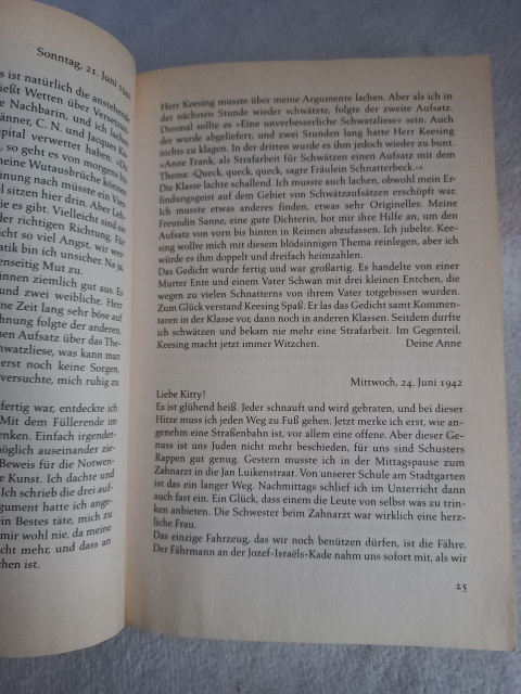 Während des Zweiten Weltkriegs muss sich die deutsch-jüdische Familie Frank in Amsterdam gemeinsam mit vier anderen Juden vor den Nationalsozialisten verstecken. Ihrem Tagebuch vertraut die erst 13-jährige Anne Frank während dieser Zeit ihre Gefühle und Gedanken an. Sie beschreibt aber auch ihren Alltag im Versteck und die erdrückende Angst vor der Entdeckung. Das Tagebuch endet am 1. August 1944, drei Tage später wird das Versteck entdeckt, Anne stirbt sieben Monate später im Konzentrationslager Bergen-Belsen. Nach dem Krieg erhält Annes Vater die verschiedenen Tagebücher seiner Tochter zurück und publiziert 1947 erstmals Auszüge daraus. Bis heute ist die Vollversion des Tagebuchs von Anne Frank in über 70 Sprachen publiziert worden.