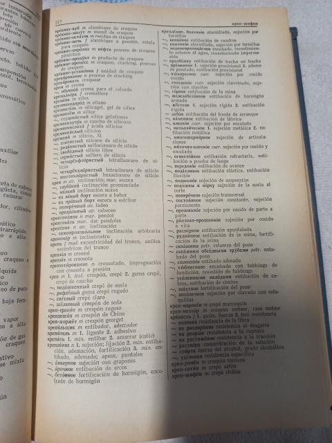 Букинистическое издание "Русско-испанский политехнический словарь" (Тягунова З. и др.) насчитывает приблизительно 72 тысячи слов и словосочетаний терминологического характера на русском и испанском языках.