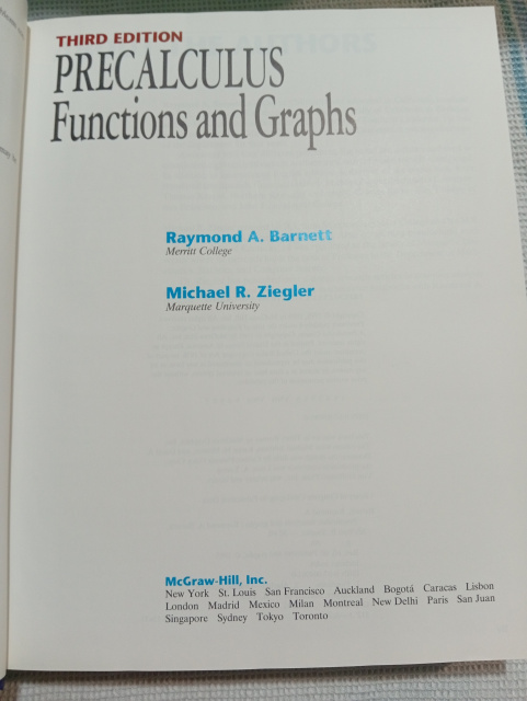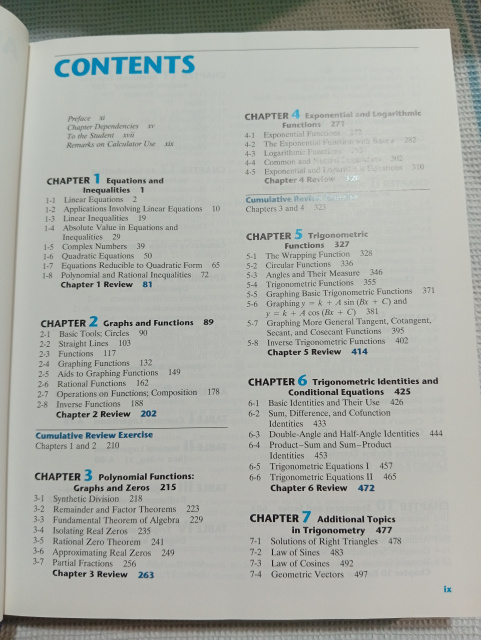 Emphasising computational skills and problem solving rather than mathematical theory, this book introduces a unit circle approach to trigonometry and can be used in one or two semester college algebra with trig or precalculus courses. It contains Explore-Discuss boxes, which encourage students to think about mathematical concepts.