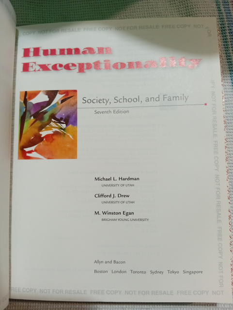 In considering human exceptionality, this book introduces the reader to exceptional individuals from multidisciplinary perspectives (education, medicine and human services), differing environmental perspectives (home, school and community), and examines issues through the life span (early intervention to adult and ageing years). It also offers an understanding of the issues in inclusive educational and social settings.