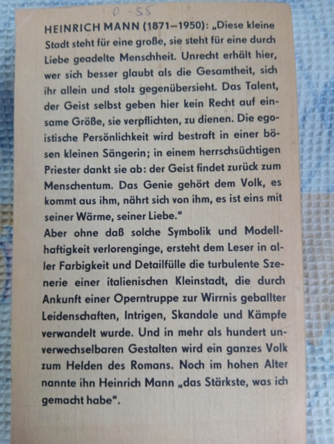 ›Die kleine Stadt‹ liegt in Italien. Alles beginnt mit dem Erscheinen einer Theatertruppe in der kleinen Stadt. »Unsere Ankunft«, so der jugendliche Held und Liebhaber der Truppe, »hat belebend gewirkt auf die Einwohner dieser Stadt, auf einmal ist ihnen der Mut gekommen, ihre Laster in Freiheit zu setzen«. Es beginnt ein Fastnachtstreiben, ein Liebes- und Rüpelspiel, heiter und böse, zart und leidenschaftlich. In seltsamen, manchmal gespenstischen Reigen verbinden sich die Schicksale der fahrenden Künstler und der Kleinbürger - Kunst und Leben, das große literarische Thema der Jahrhundertwende klingt an. ›Die kleine Stadt‹ ist ein utopischer Gegenentwurf zur politisch unmündigen Gesellschaft der Wilhelminischen Ära. »Was hier klingt«, schrieb Heinrich Mann zu diesem Roman, »ist das hohe Lied der Demokratie. Es ist da, um zu wirken in einem Deutschland, das ihr endlich zustrebt. Dieser Roman, so weitab er zu spielen scheint, ist im höchsten Sinn aktuell.«